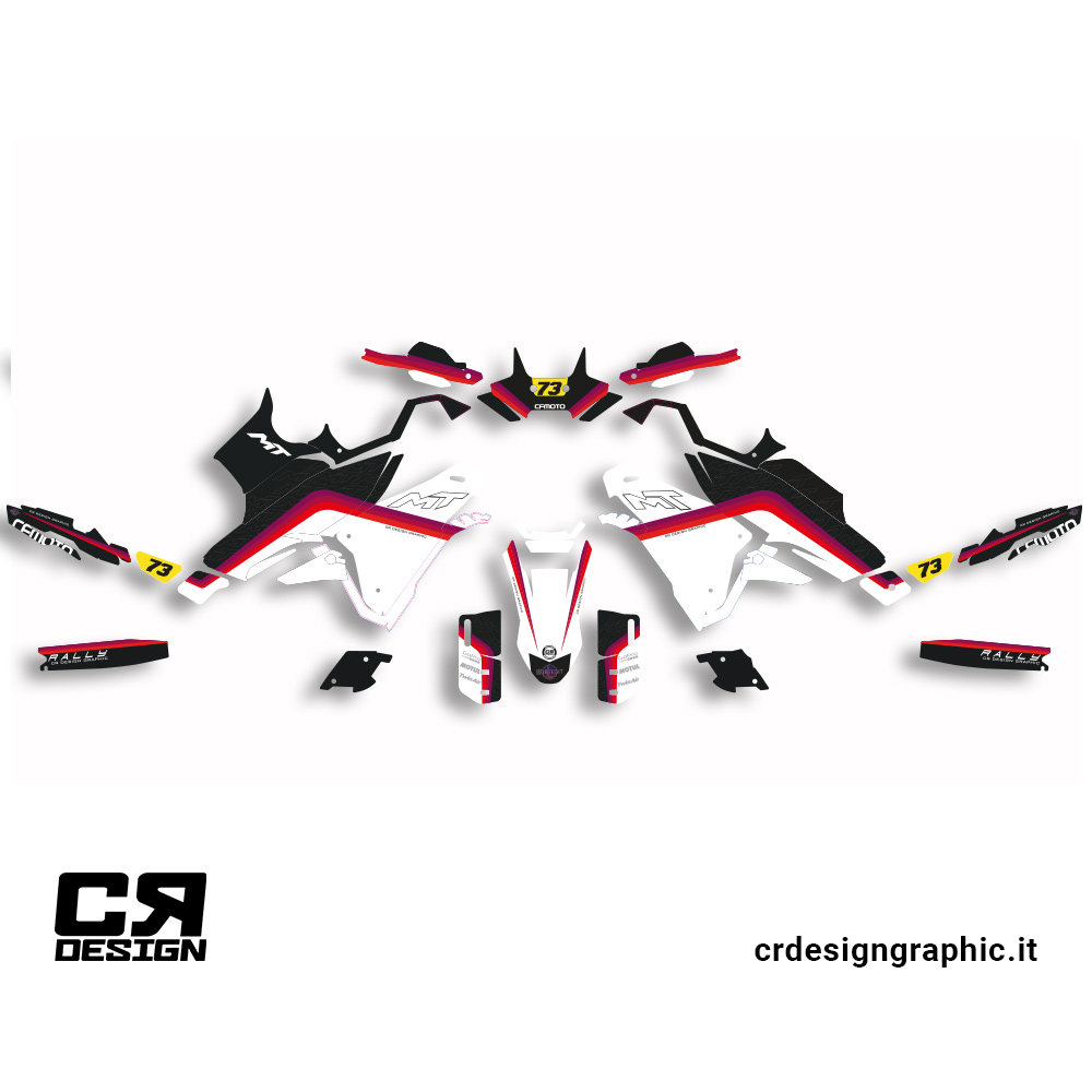 Kit grafiche adesivi per CFmoto MT450 DB7even dal 2022 al 2026 con finitura lucida o opaca.