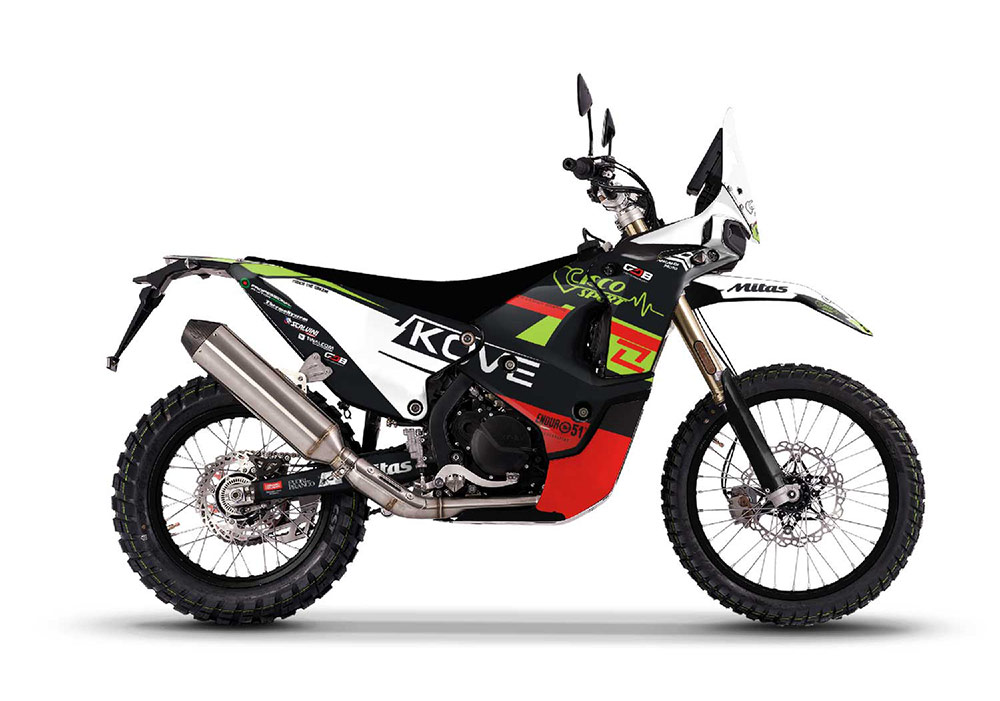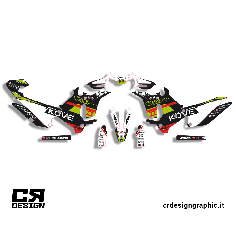 Kit grafiche adesivi per KOVE 450 Rally 05 dal 2022 al 2026 con finitura lucida o opaca.